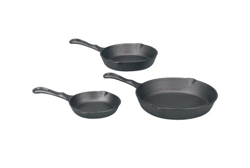 Country Cabin PreSeasoned Cast Iron 3-Piece Skillet Set is best for youProduct Description Simple and hearty, Columbian Home Products Country Cabin 3pc round skillet set adds rustic charm to the kitchen while it provides thoroughly modern service. The natural cast-iron construction is ideal for tasks like searing, browning, stewing, and slow cooking. PreSeasoned so that it is ready-to-cook immediately. All Country Cabin Cast Iron cookware features our exclusive HEAT GROOVE BOTTOM DESIGN. This eliminates heat buildup and improves heat distribution for more even and consistent cooking. Glass Cooktop Safe. Can be used on stovetops, BBQ grills, and even the campfire. The unique properties of cast iron require less heat and energy to cook quickly and efficiently, and it is naturally nonstick as well. Cast Iron has terrific heat distribution so no hot spots, and extended heat retention at both low and high temperatures keeps food warm from kitchen to table. This versatile pan also features high sides and dual pour spouts to drain off excess liquids safely. Versatile cast iron cookware has been used by generations of family chefs. The ideal cookware for healthy naturally nonstick cooking. Warp-resistant and long-lasting durability, the vessel is easy to lift and maneuver by its arched handle with a textured thumb grip for secure control. Fire it up for anything from morning bacon to midday veggies to evening steaks and chops! USING YOUR CAST IRON COOKWARE: Before cooking, lightly oil the surface, and preheat over low to medium heat for 60-90 seconds. Preheating prepares the surface and allows the food to cook more evenly without sticking. Repeat before each use. Please make sure that you lift the cookware to move across glass or ceramic surfaces. The cooking vessel is oven safe to 500-degrees Fahrenheit. NEVER USE IN A MICROWAVE. Always use hot pads to remove cookware from stovetop or oven. This cookware is heavy – please handle with care. CARE AND CLEANING INSTRUCTIONS: Rinse in hot water after each use. Scrub with a good brush to remove burned on food particles. Avoid using harsh detergents as they remove the seasoning from the cookware. Make sure you thoroughly dry before storing. NEVER PUT IN A DISHWASHER. FOR BEST RESULTS: Re-season your cookware regularly. To season the pan, coat the entire surface of the pan (inside and outside) with any kind of vegetable oil, spray, or melted solid shortening. Use a cloth of paper towel to spread the oil. Heat your oven to 300-degrees Fahrenheit and place the pan inside for about one hour. Remove the pan from the oven and allow to cool. Wipe away any excess oil and store safely. Amazon.com Simple and hearty, Keilen's Country Cabin 3-piece skillet set adds rustic charm to the kitchen while it provides thoroughly modern service. The natural cast-iron construction is ideal for tasks like browning, stewing, and slow cooking because it warms slowly, then supplies even heat distribution and extended heat retention at both low and high temperatures. The pans also feature high sides to control splatters and dual pour spouts to drain off excess liquids safely. Naturally weighty for warp-resistance and long-lasting durability, the vessels travel easily from stovetop to table by their arched handles complete with thumb rests. The three handy sizes take on any job, and the set can be nested or hung for tidy storage. One care note: Cast iron must be seasoned before use, but then offers a lifetime of natural nonstick service with little maintenance needed. --Kara Karll What's in the Box 1 small, 1 medium, and 1 large cast-iron skillet.