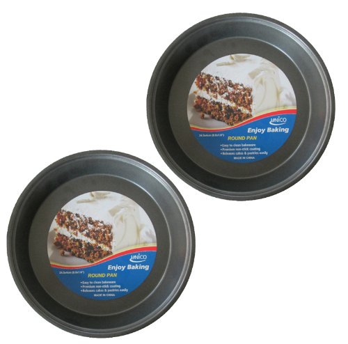 Unico 2 Pack Round 9.6" x 1.6" Premium Non-Stick Baking Pan Heavy-Gauge Aluminized Steel is best for youUnico bakeware is perfect for all your baking needs. This bakeware is made of premium quality, non-stick material. Bakes evenly so your cakes and pies release easily. Constructed of heavy-gauge aluminized steel to provide even heat distribution and consistent baking results, the nonstick interior ensures easy food release and cleanup, and rolled edges prevent warping.