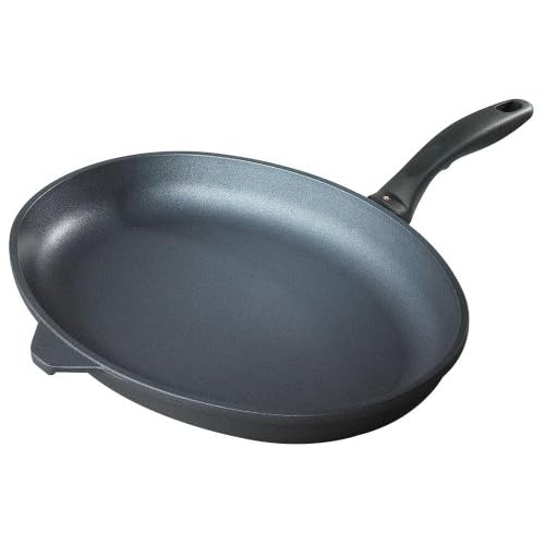 15" Non-Stick Frying Pan is best for youSwiss Diamond oval fish pan measures a large 10.25' x 15' and features a unique oval shaped non-stick cooking surface which is great for fish, steak, potatoes, or veggies. The non-stick surface is made using diamond crystals to form a virtually indestructible surface that will not peel, crack, or blister. The non-stick surface also helps provide perfect heat distribution for cooking meals containing less fat. The pan is made from a 6mm thick pressure cast aluminum which has a perfectly flat base for use on all ceramic, gas, and electric cook tops. The stay cool handle is ergonomically designed and is safe for use in an oven up to 500F. Metal utensils are safe for use on the non-stick surface and the pan is safe for use in the dishwasher. The inside depth of this fry pan is 2.2'. The Swiss Diamond oval fry pan is the perfect pan to enhance any user's cooking skills.