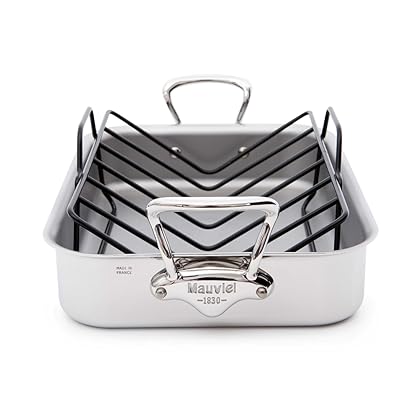 Mauviel Made In France M'cook 5217.40GWP 15.7 by 11.8-Inch Rectangular Roasting Pan and with Bonus Roasting Rack is best for youIn 1830 in a Normandy village called Villedieu-les-Poles, Mr. Ernest Mauviel established the Mauviel manufacturing company. Villedieu-les-Poles, long known as The City of Copper, has an 800-year heritage of copper manufacturing. Mauviel's manufacturing expertise is based on this rich tradition of copper manufacturing that has been handed down from generation to generation. Since the very early-years, Mauviel has been a fixture in the professional and commercial markets. Today, Mauviel continues to offer the professional chef products that are unsurpassed in quality and design. Throughout the world, Mauviel is the cookware acclaimed chefs depend on: their restaurant and reputation relies on the best. Mauviel offers several collections of superior cookware- each designed and crafted to meet the needs of the most discerning chefs. Mauviel's M'Cook Collection is a high performance cookware line comprised of the following five layers: Magnetic Stainless Steel interior, Aluminum, Aluminum Alloy, Aluminum, and a Magnetic Stainless Steel exterior. Each piece in the collection is uniformly 2.6mm thick, and is designed to work on all cooking surfaces: electric, gas, halogen and induction. The handles are made of stay cool cast stainless steel and are ergonomically designed for safe usage. The M'Cook collection has pouring rims on all the shapes; is oven safe (to 680-degree F) and dishwasher safe. Made in France, Lifetime warranty.
