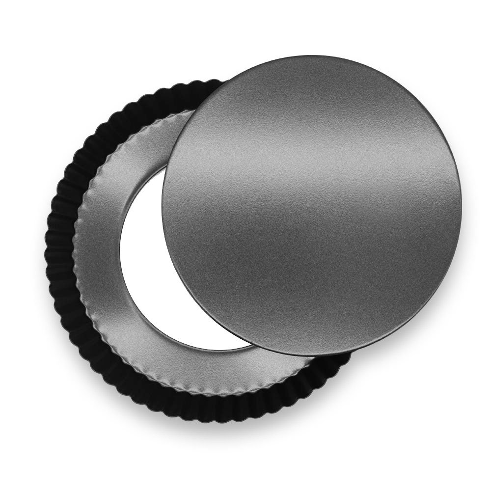 Marx 9 Inch Nonstick Quiche Pan With Removable Bottom, Removable Loose Bottom Tart Pan, Pie Pan is best for youThe pan is made by special high-carbon steel and characterized by high hardness and super endurance. Super thermal conductivity makes uniform heating and service life is more than 20,000 times. Xylan series champagne coating provided by American top-class coating brand Whittford is characterized by the ease of demolding and cleaning, wear resistance and endurance, and meets EU LFGB and American FDA standard for food grade.