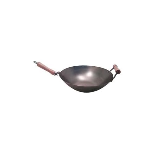 14 Inch Carbon Steel Wok w/ Helper Handle (Flat Bottom) USA Made is best for youThis heavy 14-gauge wok is an easy and fun to use. The natural, blond, wooden handle and side spool handle allows the cook full command of the wok. The flat bottom wok is designed to sit directly on an electric stove to take advantage of all the heat. Wok cooking is done with high heat. The flat bottom wok also works very efficiently on a gas stove. If cooking with gas, the same wok is available in round bottom. Wok measures 4' in depth. Cooking recommendations: 12' for up to 5 people, 14' for 6 to 12 people, and 16' for over 12 people. Must be seasoned.