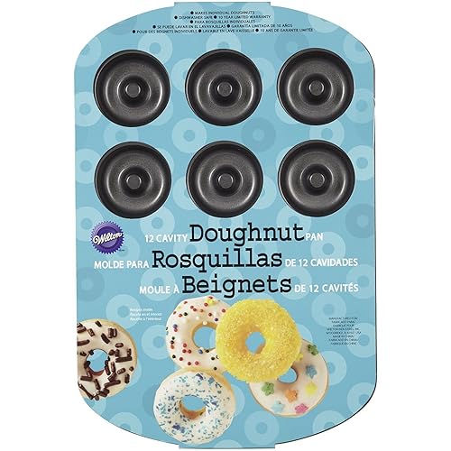 Wilton Nonstick 12-Cavity Medium Donut Pan is best for youDesign:Medium Great for family projects, baked doughnuts are more delicious, easier to make and healthier than fried doughnuts. Durable nonstick pan- cleanup easily in the dishwasher. Recipe included.