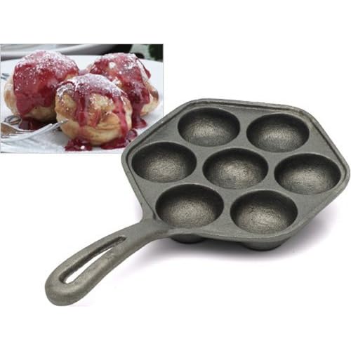 SCI Scandicrafts 7-Cup Aebeleskiver Pan, Cast Iron is best for youColor:Original Professional chefs consider cast-iron pans to be precision cooking tools, as these dependable pans enable precise control of cooking temperatures. Their heat retention qualities allow for even cooking temperature without hot spots. Cast-iron pans can be used on top of the stove or to bake in the oven. The Aebleskiver Pan is designed for making the traditional Danish spherical pancakes. Aebleskiver are cooked by frying in a special pan wíth several hemi-spherical indentations in the bottom of the pan.