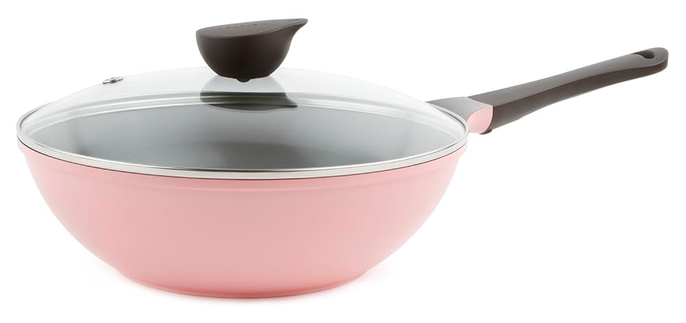 Wok (Chef's Pan) with Glass Lid - 12-inch Ceramic Nonstick in Pink by Neoflam best All Pans