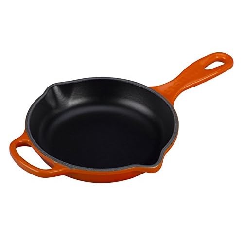 Cast Iron Signature Skillet Color: Flame, Size: 6.33" Diameter is best for youLS2024-162 Color: Flame, Size: 6.33' Diameter Features: Material: -Cast iron. -Helper handle adds comfort and control when lifting. -Spacious cooking surface for multiple servings or larger ingredients. -Even heat distribution and superior heat retention. -Durable black enamel finish requires no seasoning. -Colorful, long-lasting exterior enamel resists chipping and cracking. -This is oven safe; however, it is recommended that it not exceed 450 degrees. Dimensions: Size 11.75' Diameter - Overall Height - Top to Bottom: -1.9'. Size 11.75' Diameter - Overall Width - Side to Side: -19.13'. Size 11.75' Diameter - Overall Depth - Front to Back: -13.5'. Size 6.33' Diameter - Overall Height - Top to Bottom: -1.75'. Size 6.33' Diameter - Overall Width - Side to Side: -17.24'. Size 6.33' Diameter - Overall Depth - Front to Back: -11.6'.