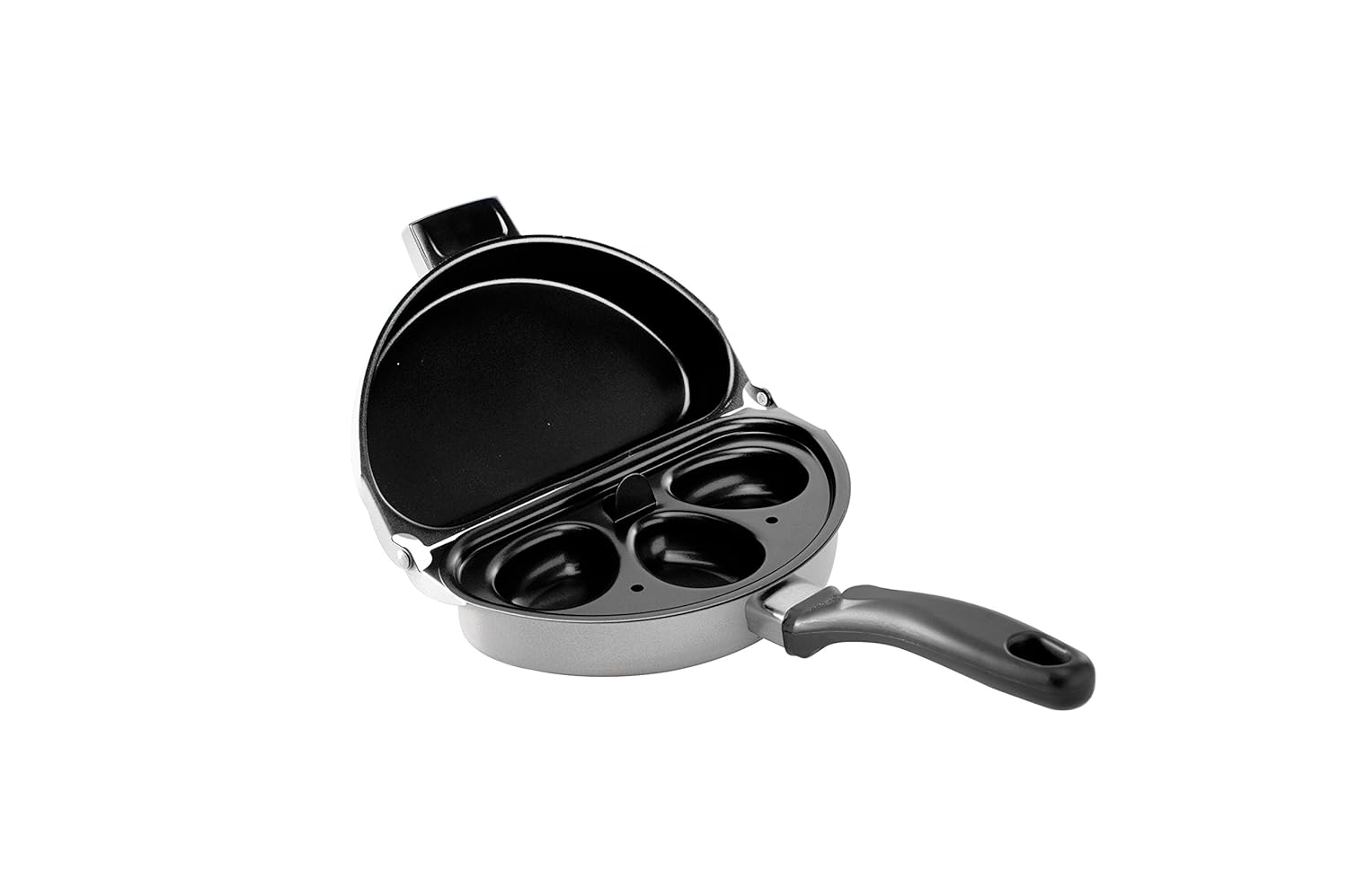 Nordic Ware Divided Skillet Omelet Pan & Poacher is best for youColor:Black Make perfect omelets or cook different foods at the same time. Unique hinge system allows pan to 'fold over' for easy omelets. With Non-Stick interiors and porcelain enamel exteriors, clean up is a snap. Made in USA with imported handle and insert.