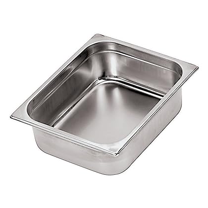 Paderno World Cuisine 12 1/2 inches by 10 1/2 inches Stainless-steel Hotel Pan - 1/2 (depth: 4 inches) is best for youThis 12 1/2 inches by 10 1/2 inches stainless-steel hotel food pan is a standard size which fits into universal racks, heating elements and walk-in coolers. This standard was intended to rationalize the working processes in food industry operations by creating a high level of compatibility of kitchen equipment. All inserts are stackable and have rounded reinforced edges. They are made of 21-gauge, 18/10 mirror-polished stainless-steel. They have seamless construction and are durable, corrosion-resistant and non-tarnishing. They do not react to any food and protect flavors. In addition to in-process control during manufacturing and fabrication, these metals have met the specifications developed by the American Society for Testing and Materials (ASTM) with regard to mechanical properties such as toughness and corrosion resistance. The Palermo series is a part of a lineage of cookware more than 80 years old. It is NSF approved.